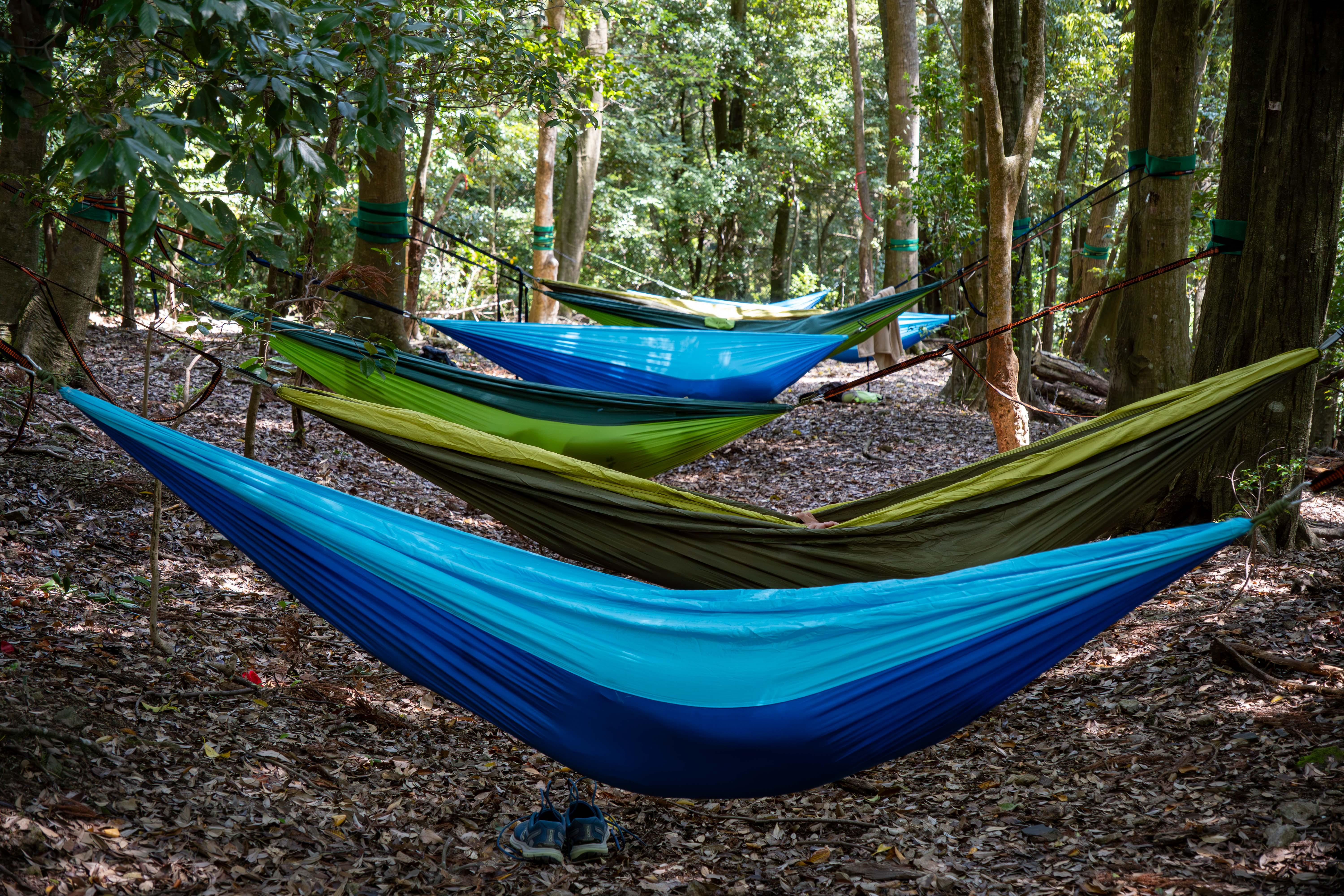 トレイルランの後はハンモックでご褒美タイムも用意しています。