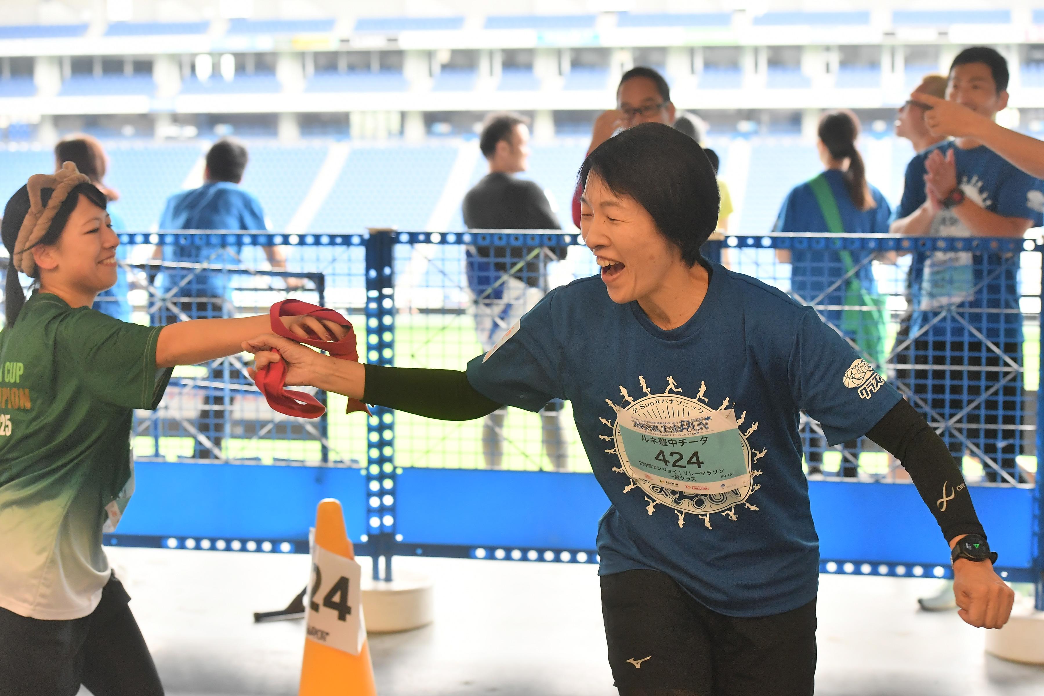 ・チームメンバー全員、最低1周走っていただきます。一人で何周走っても構いませんし、走る順序や回数も自由です。休憩をはさんで、再びタスキを受けても構いません。
