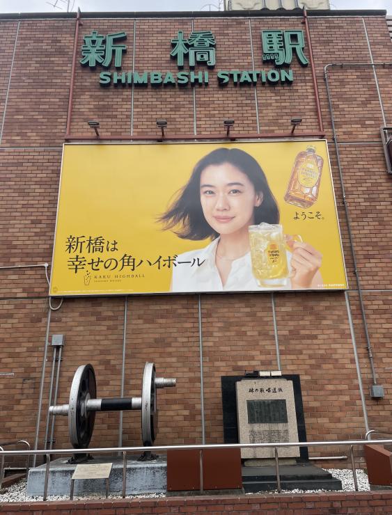 目印:JR新橋駅汐留口側にある「鉄道歌唱の碑」
