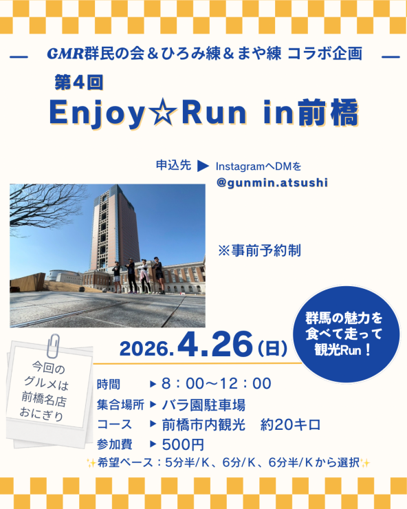 群馬の名所をみんなで楽しく走って、そのご当地のグルメを走った後に楽しむ恒例イベント。