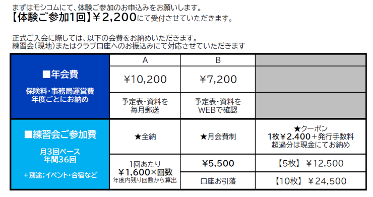 別途;スポーツ安全保険料をお納めいただきます