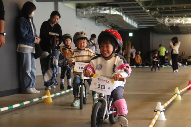 ひよこカップは初心者・初級者向けのレースです。特徴は、使用できるランニングバイクが13インチ以下、タイヤは樹脂製のみ(※ゴム製タイヤは使用不可)という、初心者のための特別ルールを設けています。勝ち負けよりも”挑戦する気持ち”や“楽しかったという体験”、他者と比べずに”選手自身(お子様)の成長”を大切にするレースです。選手(お子様)のはじめての一歩を、ぜひご家族で応援してください。