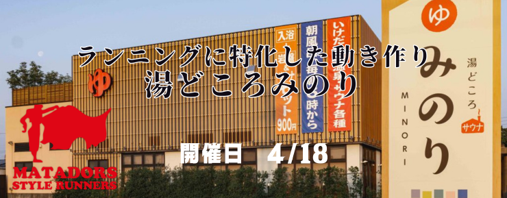 2026年4月18日の湯どころみのりランニングイベントは、ランニングに特化した動きづくりを行います。