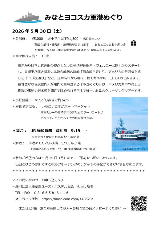 日露戦争における連合艦隊の旗艦『記念鑑三笠』、スカジャンや米軍払い下げのミリタリー商品などが並びアメリカの雰囲気を感じる『ドブ板通り商店街』、そしてアメリカ海軍や海上自衛隊の艦船を間近で見える日本で唯一の『軍港クルージング』と、江戸時代から現代に続く海軍の町・横須賀を歩きます。