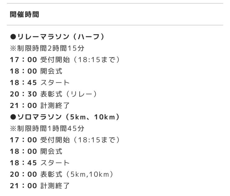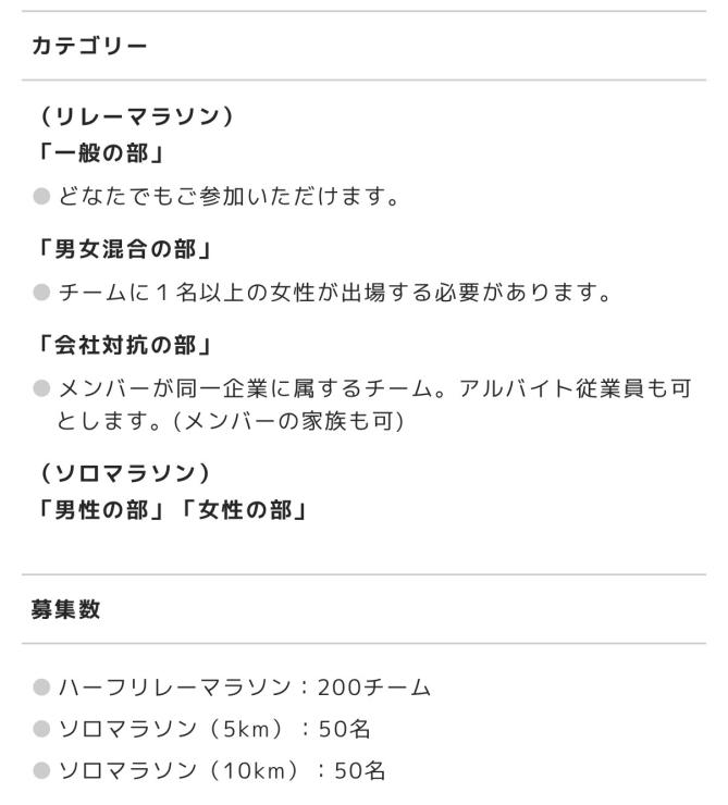 - ランニング(種目:フル、ハーフ、30km走、ウルトラ、駅伝・リレー、親子・キッズ、その他)