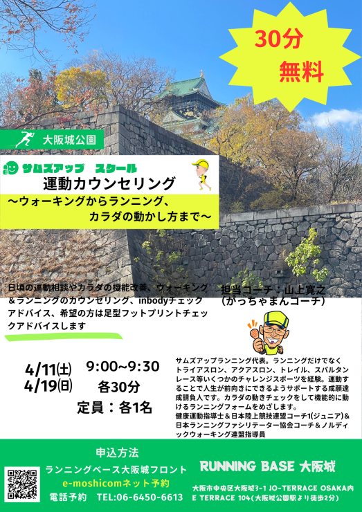 4月19日(日) 運動(ウォーキングからランニング、カラダの動かし方まで)カウンセリング 受付中