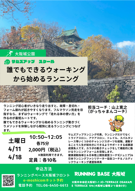 4月18日(土)誰でもできるウォーキングから始めるランニング 受付中