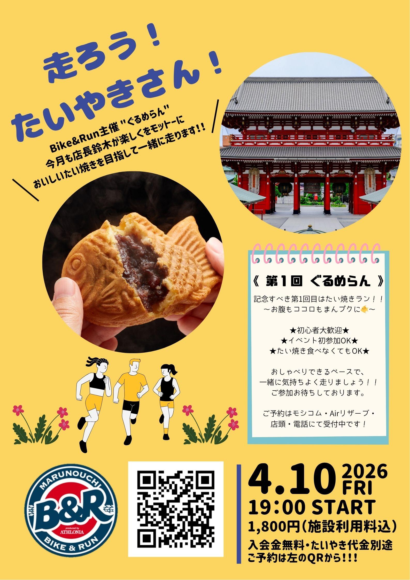 仕事終わりにランニングを楽しみながら、浅草方面でたい焼きのご褒美をご用意しています。