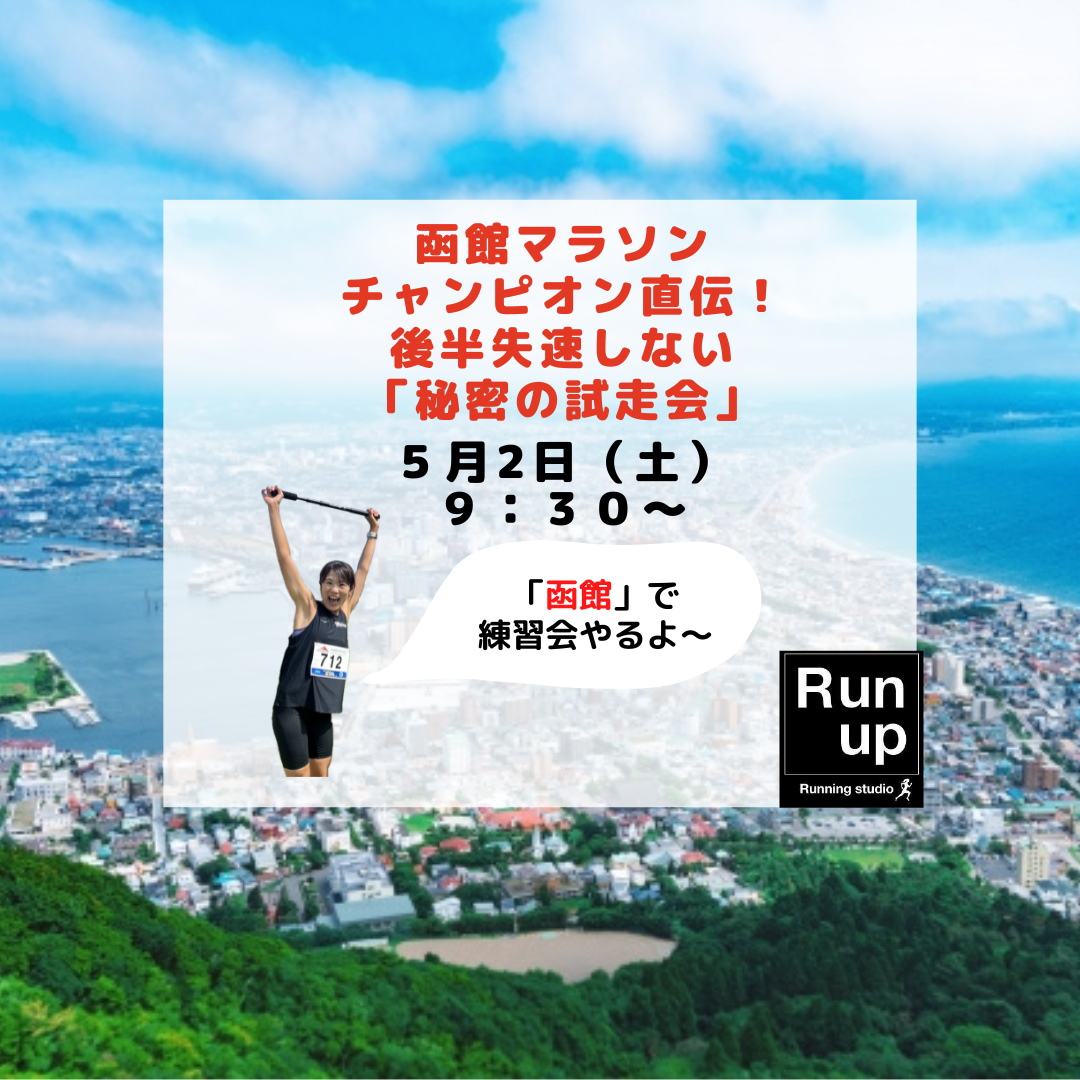 普段千歳や札幌で行っている「走り方のコツ」を、道南のランナーさんにも体験していただきたいです。函館マラソンにエントリーされた方はぜひご参加ください!(エントリーしてなくてもOK)