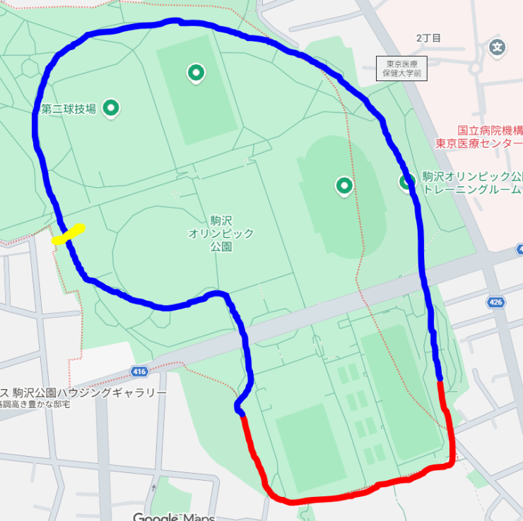 ・駒沢公園のランニング走路の「0m地点」を目指してください。