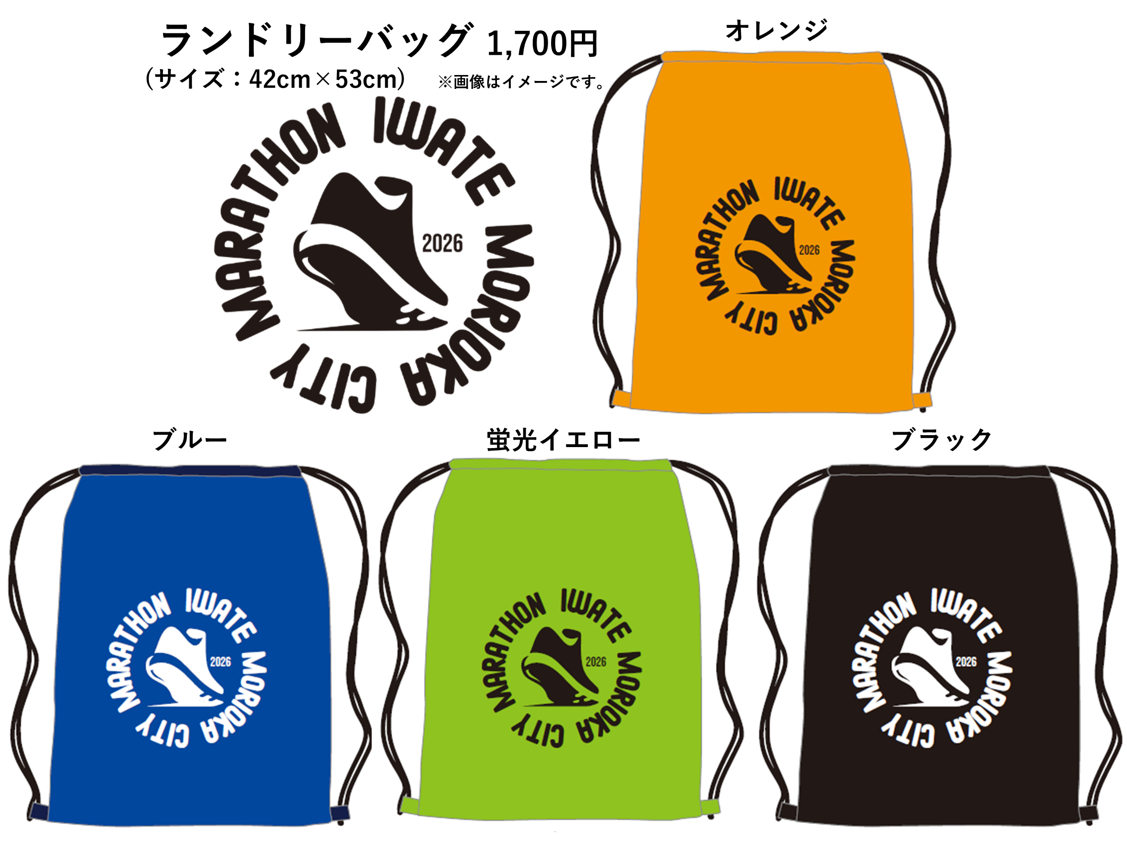 いわて盛岡シティマラソン2026の参加記念品オプション(大会オリジナル ランドリーバック)を販売いたします。なお、イー・モシコム所定の手数料が必要になります。