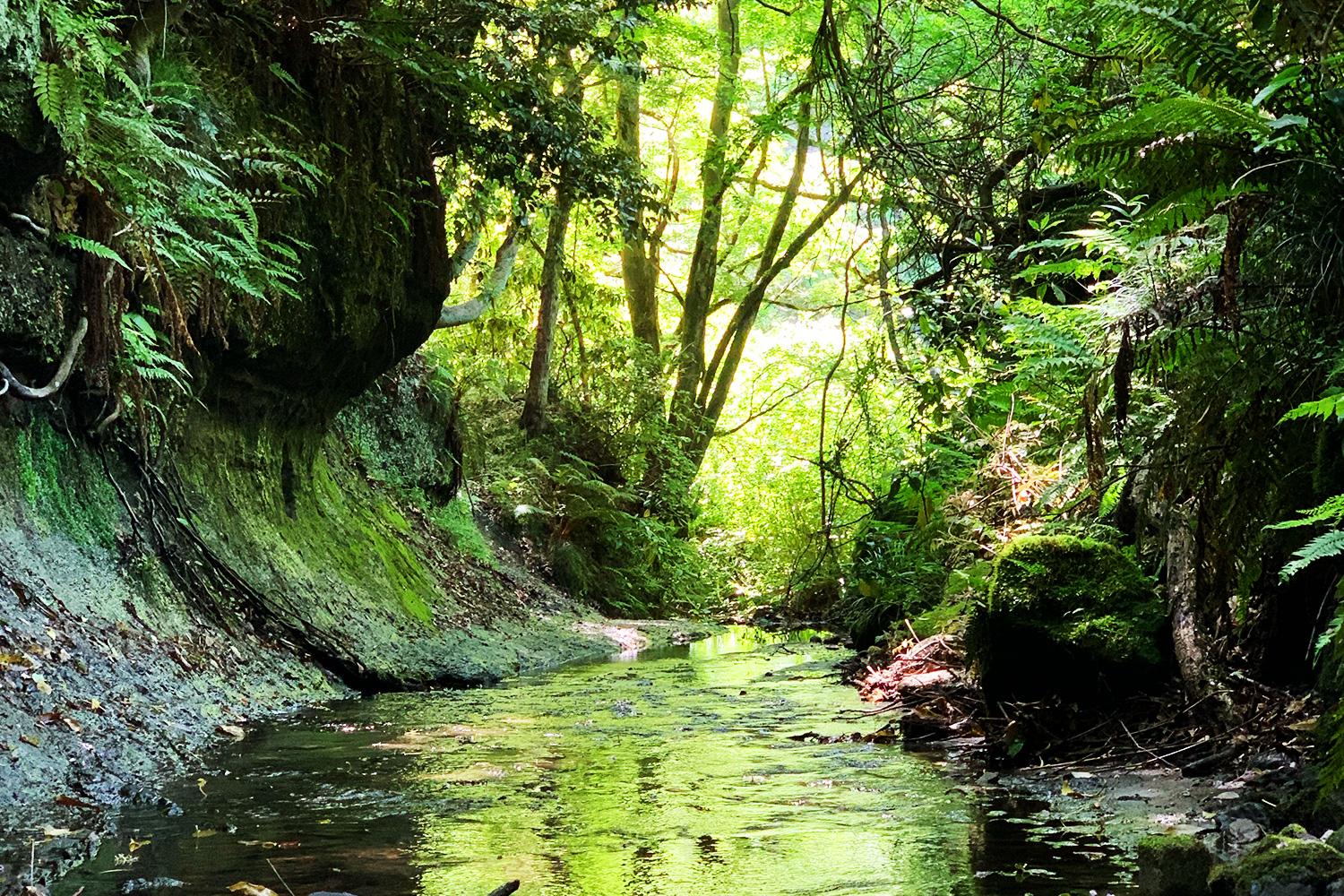 マイナスイオンたっぷり!小川が流れる谷間のトレイル