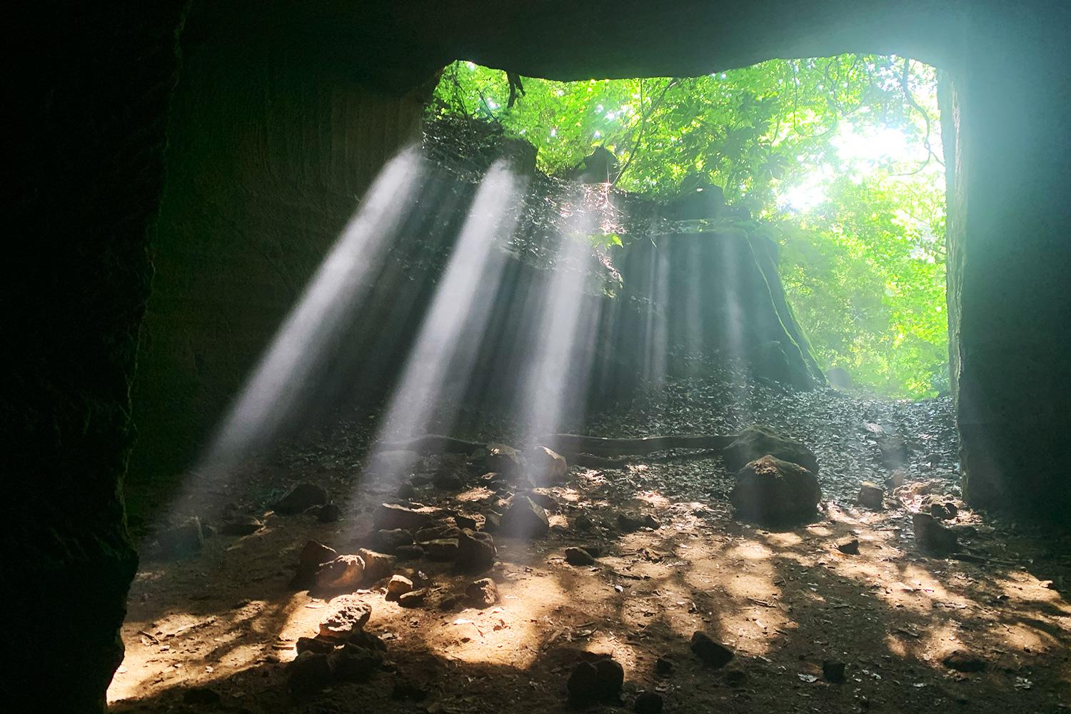 そして、絶景を満喫した後は、山の中にぽっかりと口を開けた神秘的な洞窟へと潜入します。光が差し込む神秘的な洞窟の中をドキドキしながら探検し、大人の冒険を締めくくります。