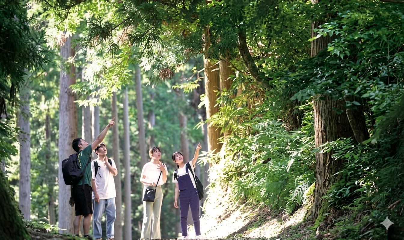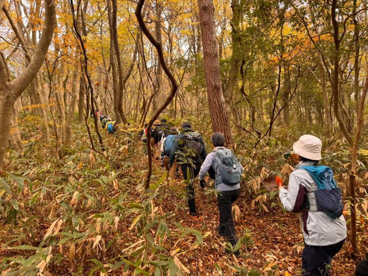 ②七尾城跡の魅力等についてコーディネータによる説明を聴講しながらトレッキングにて七尾城跡を目指す。