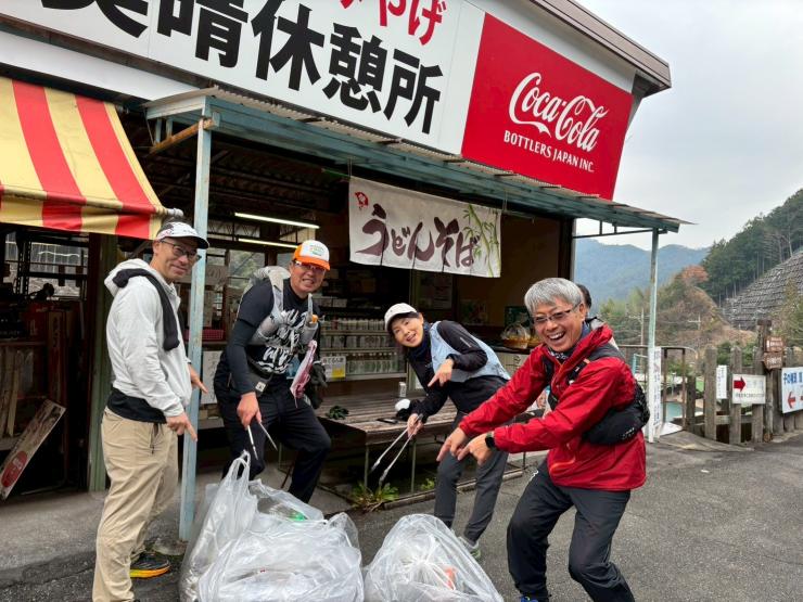 ・奥武蔵ロングトレイルレース後のクリーンアップ作業は選手が落とした補給食のゴミや、その他コース上で見つけたゴミの取集、回収漏れのマーキングテープや誘導看板などの回収、コース上のトレイル破損具合、補修が必要な個所などの記録を行います。