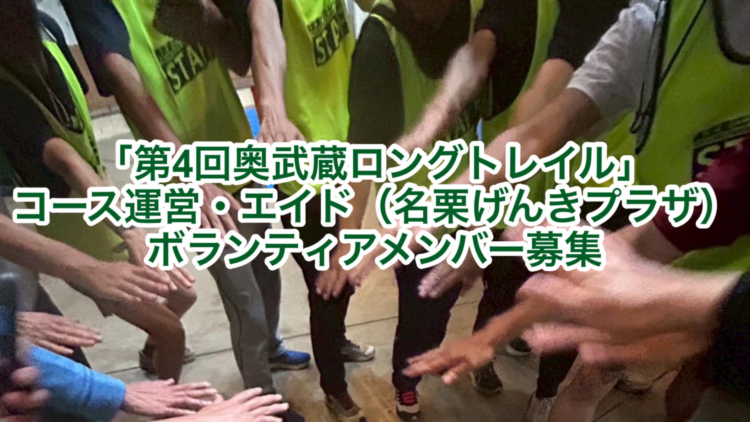 5月30日、31日に開催されます「奥武蔵ロングトレイル」のボランティアメンバー募集になります。今年度からコース運営はBeeeBeeeが行うこととなりました。一人でも多くの方にご協力をいただきたくお願い申し上げます。単独の申込でもOK、チームや団体での申込もOKです。一緒に楽しくたくさんのランナーの後押しをしましょう。「募集詳細」に記載されている募集ボランティアをご確認ください。