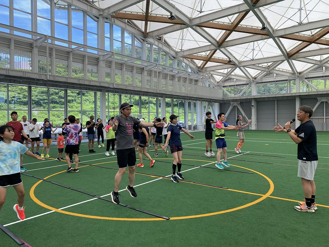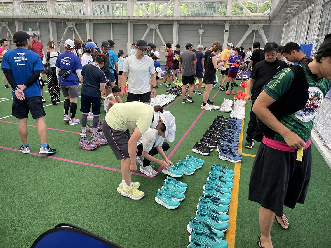 今回は、複数メーカーのランニングシューズ試し履きランニングやシャトルラン大会、リズムトレーニング体験、PNFストレッチ、骨盤調整に足型測定など。