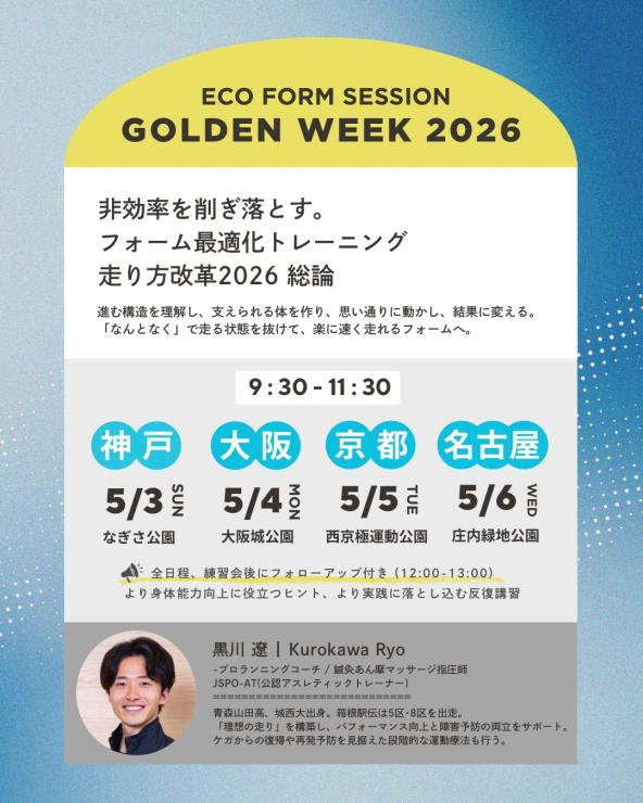 【大阪】『非効率を削ぎ落とす。フォーム最適化トレーニング 走り方改革2026総論』 受付中