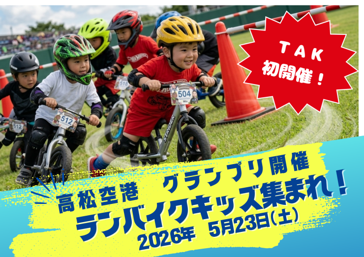 高松空港ターミナルビル屋上送迎デッキにて“初開催”となるランバイク大会「ランバイクKAGAWA 高松空港グランプリ」を実施します。