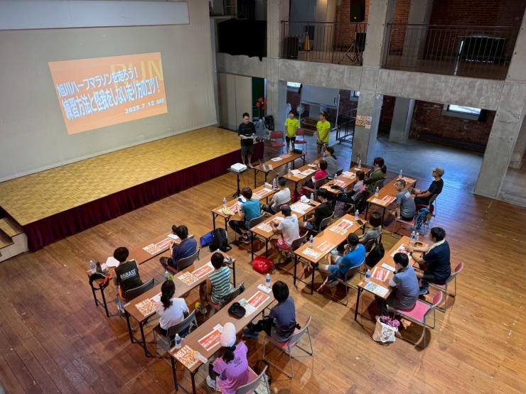 ケガを防ぎ、最後までラクに楽しく走るための「疲れない体の使い方」をレクチャーした後、実際のハーフコースを一部試走します。