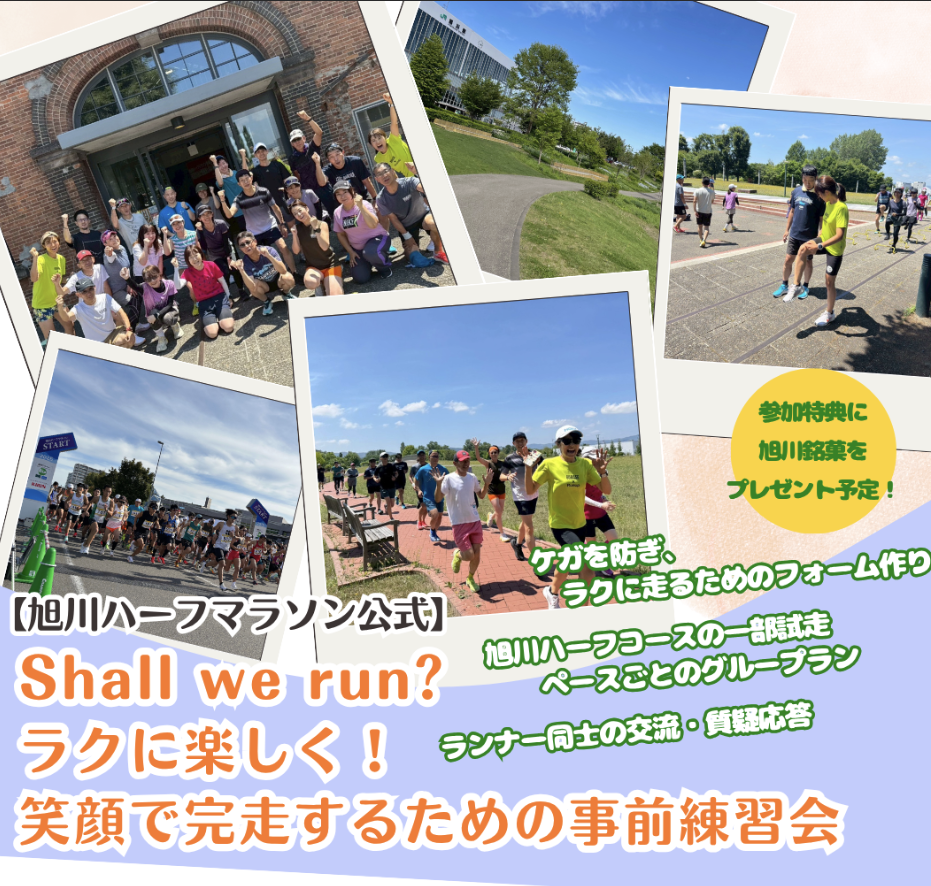 今年の大会スローガン「Shall we run?」をテーマにした、旭川ハーフマラソン公式の事前練習会です!