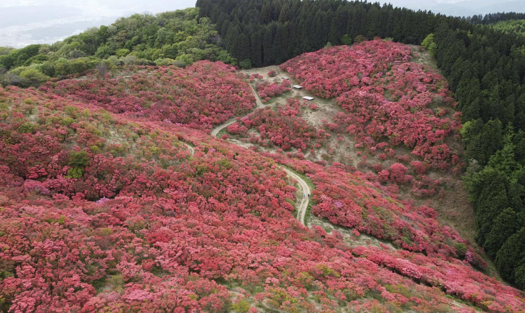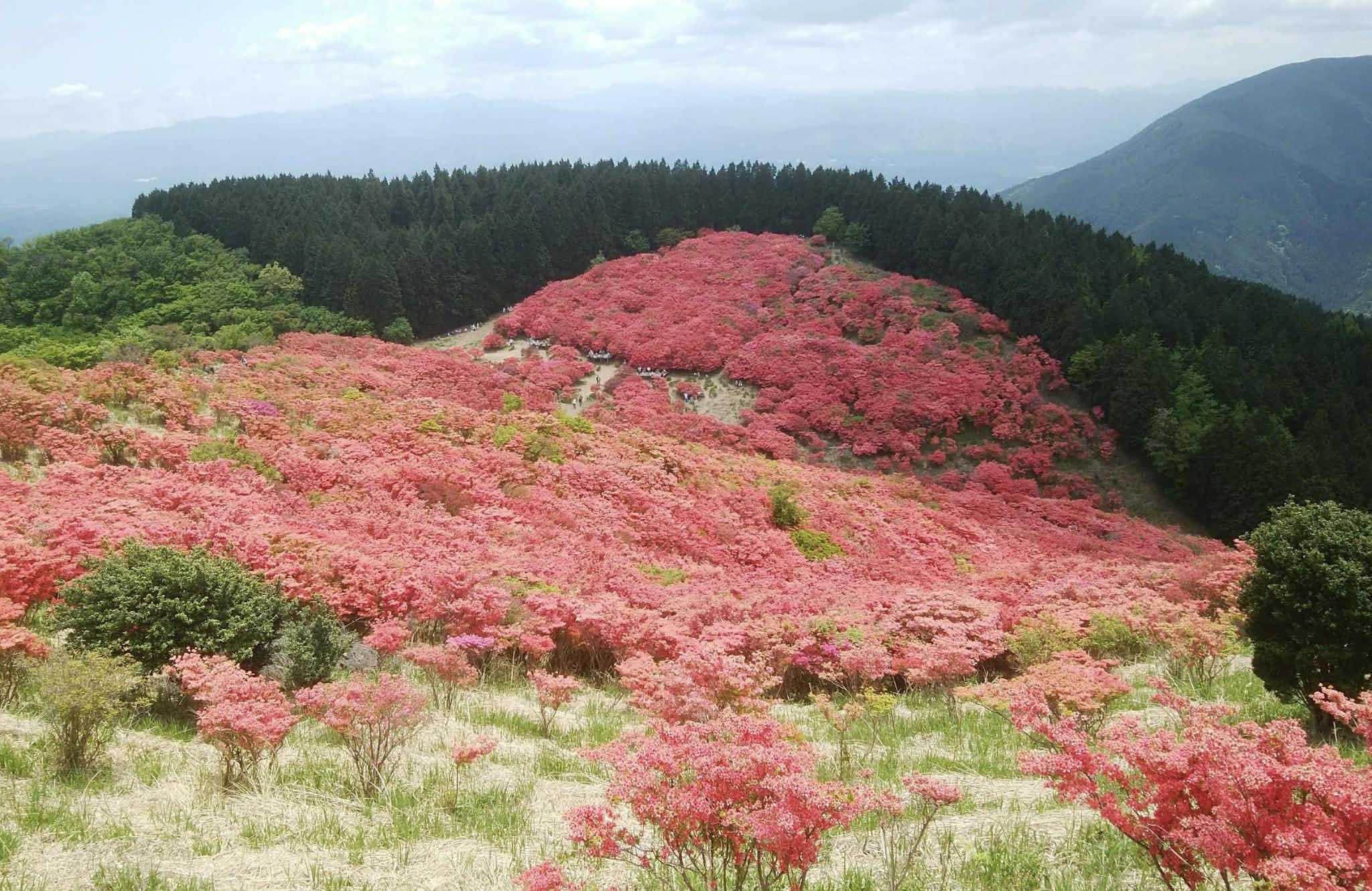 鮮やかなツツジはまるで赤の絨毯のように美しく、俗に「一目百万本」と言われています。感激のため息が漏れることは間違いありません。