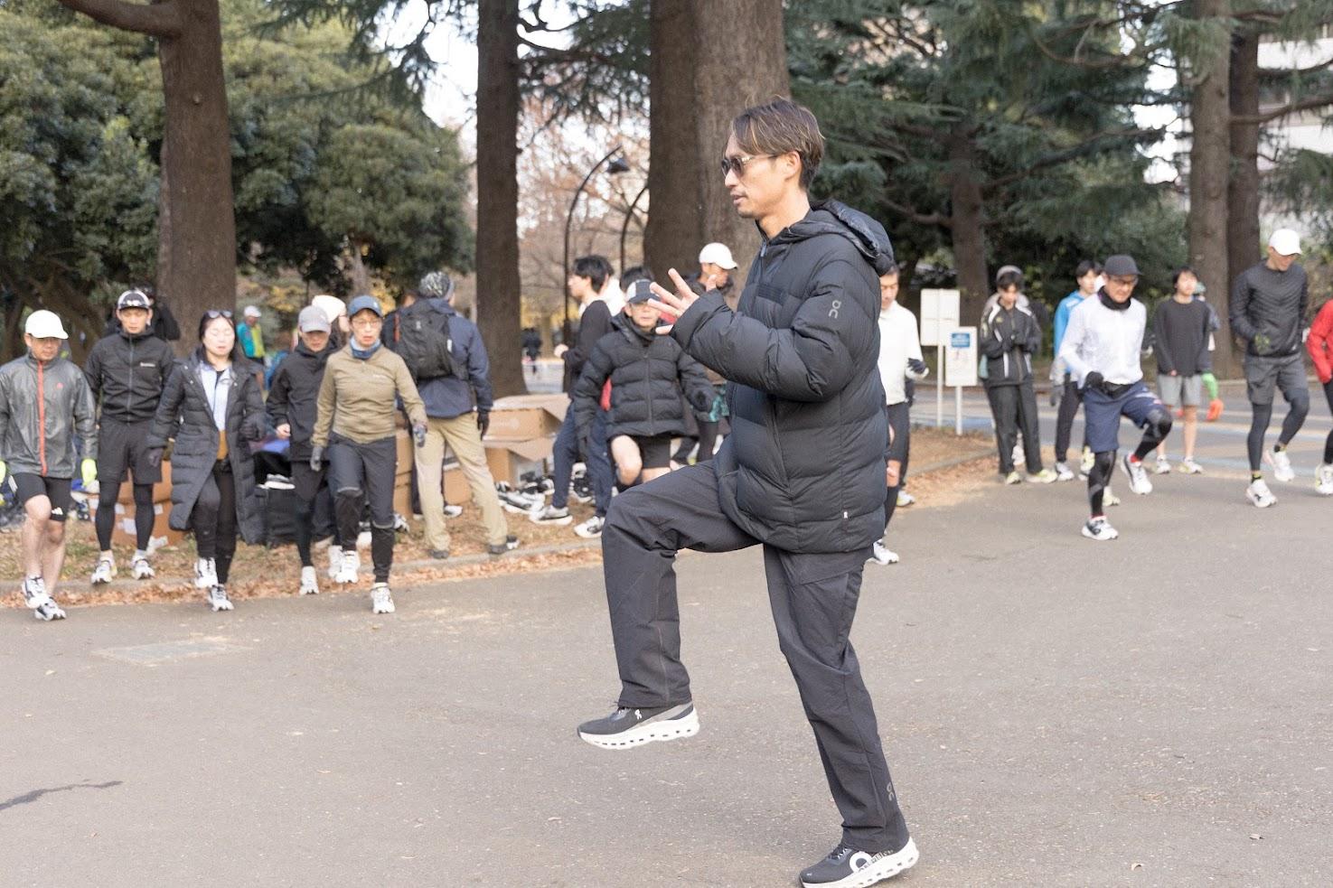 Onのアンバサダーを務める横田真人が参加し、淀川河川公園の5.0kmコースを3周する合計15.0kmのペース走。