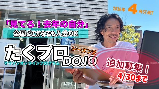 【追加募集4末まで】たくプロDOJO シーズン2~マラソンの基礎〜前期2026年9月まで 受付中