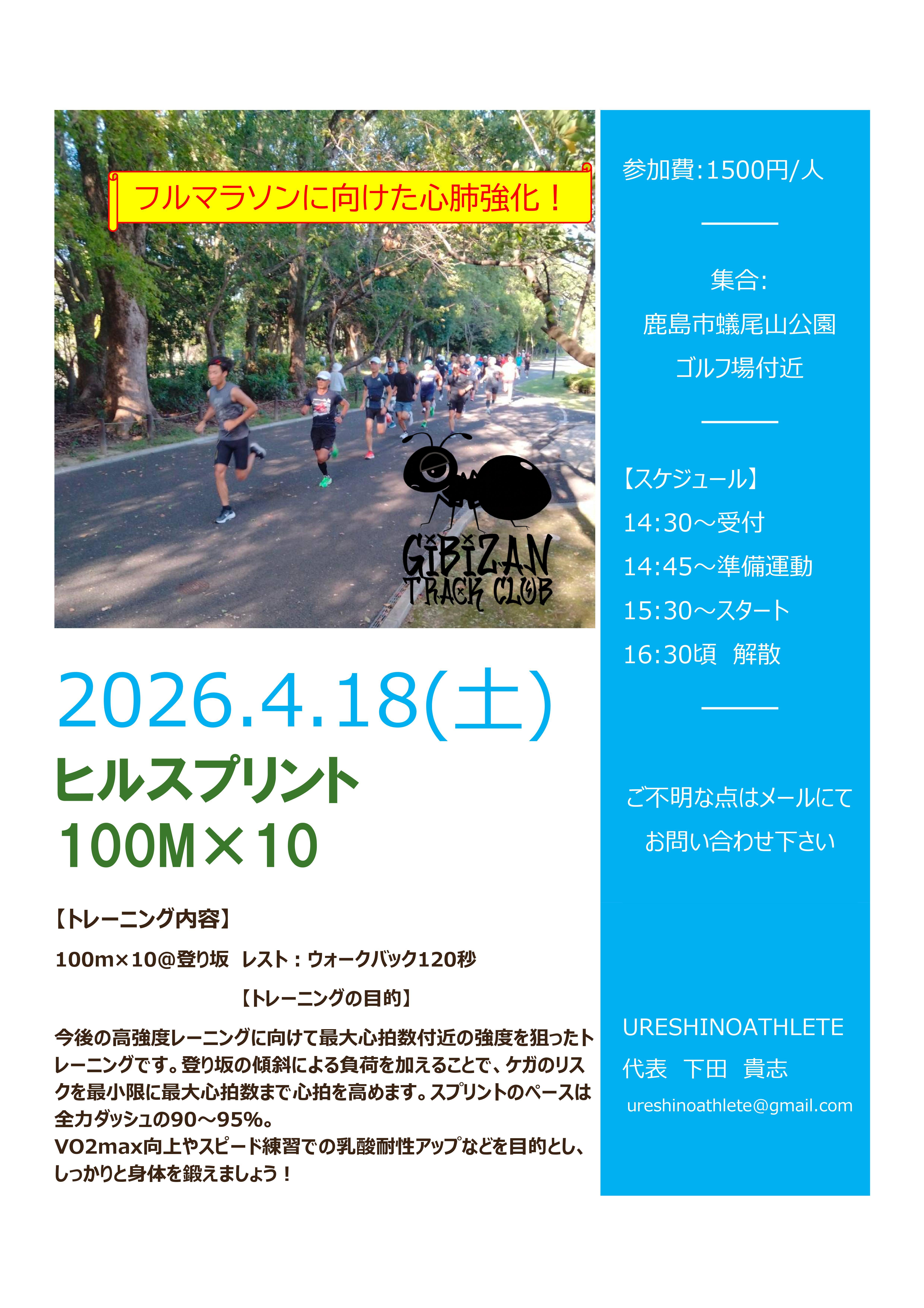 【蟻尾山TrackClub】ヒルスプリント100m×10!心臓をシバキ上げる! 受付中