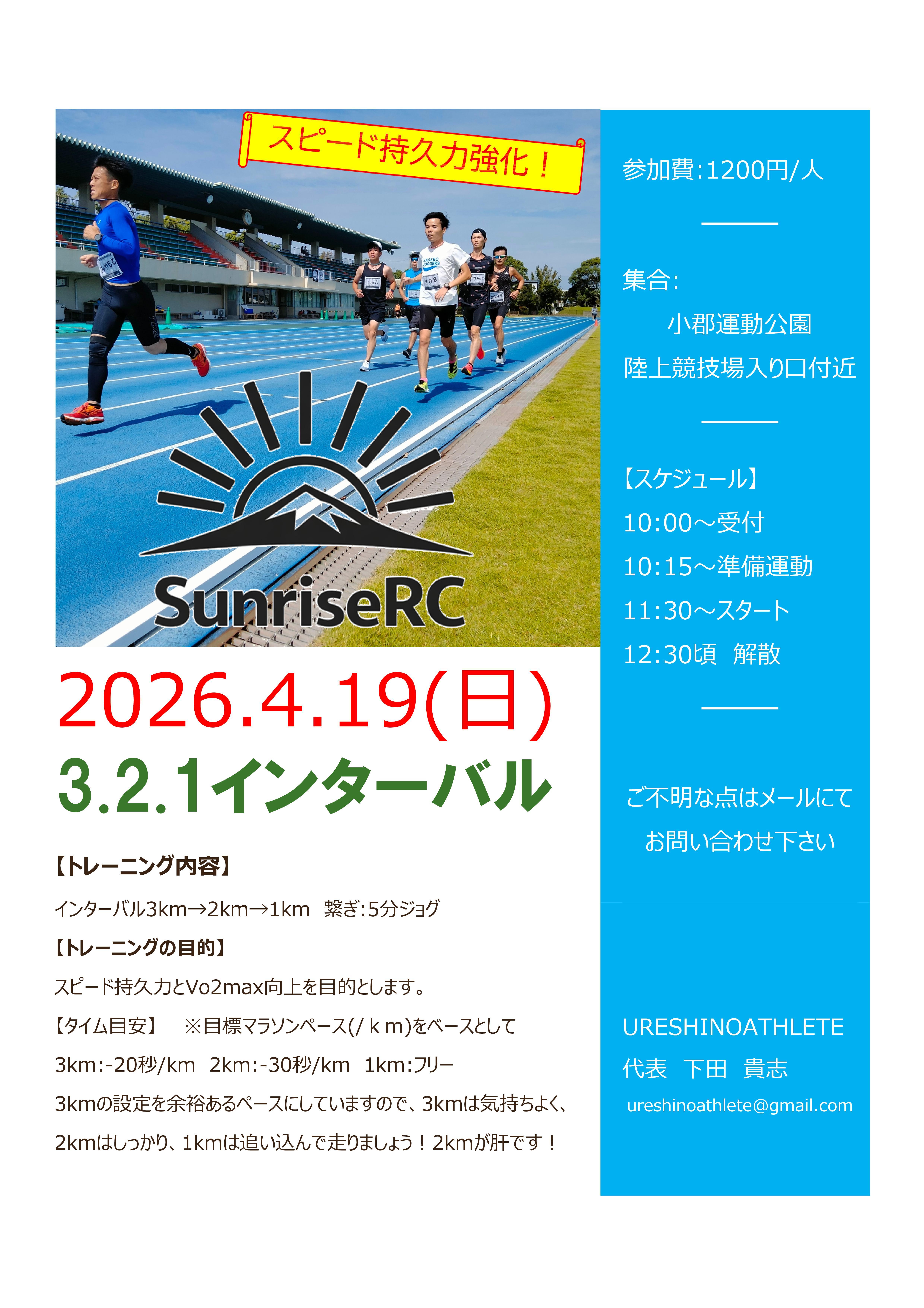 そこで今回はスピードを強化するトレーニング「3.2.1インターバル」の練習会を開催します。