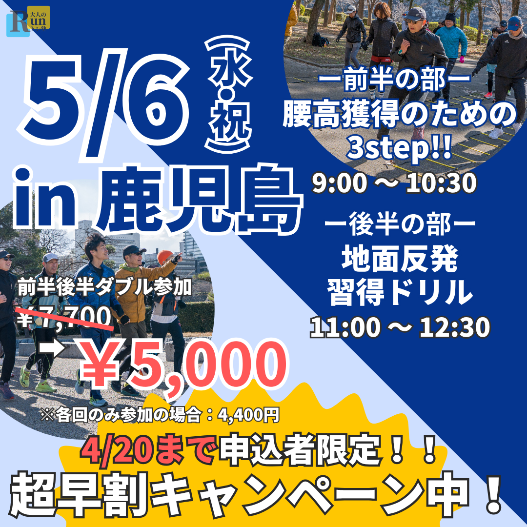 大阪東京で大人気のプロランコーチが鹿児島に!500名以上にお伝えした分かりやすい理論を直接指導!前半に「腰高習得3STEP」、後半に「地面反発をもらえるドリル」の2つのランクリニックを開催します!理論と実践で、走りを変えて楽に進むフォームを習得しよう!!