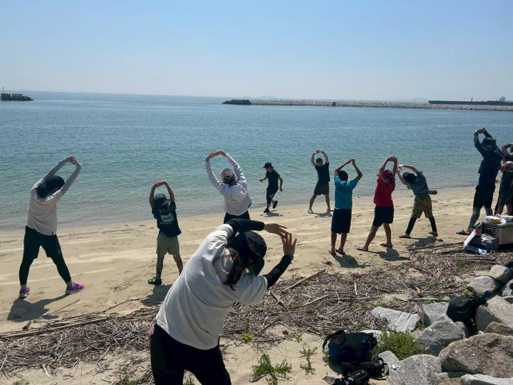 ゲーム形式でプロギング、ビーチフラッグなどのアクティビティを通して、