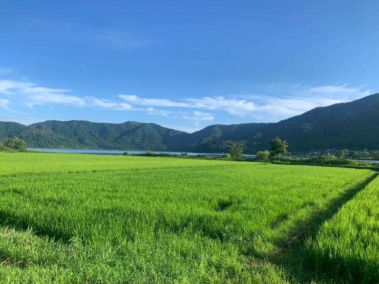 5月の新緑の季節の余呉湖はとても綺麗です。