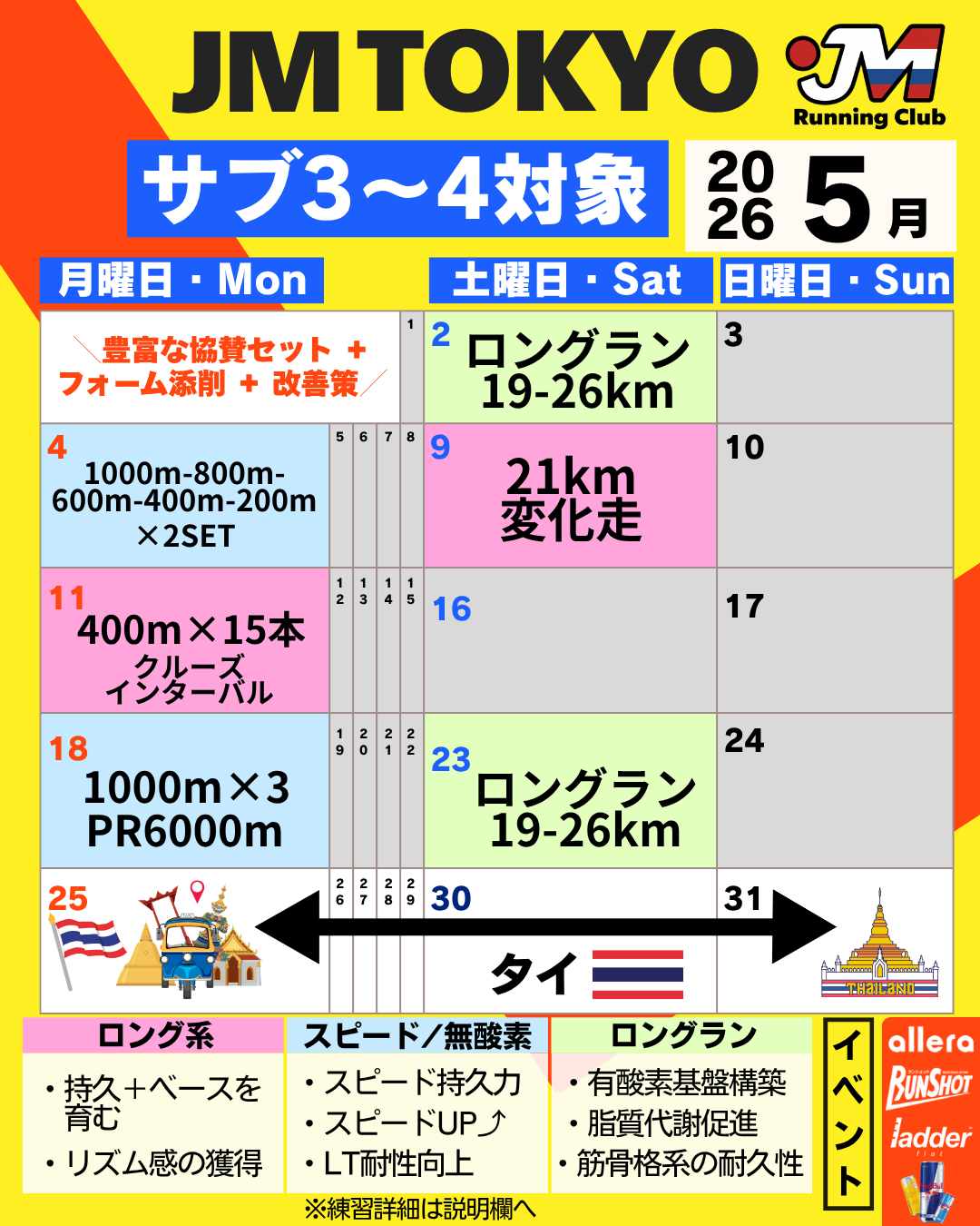 【T3練習会】サブ3.5/サブ3.75/サブ4クラス