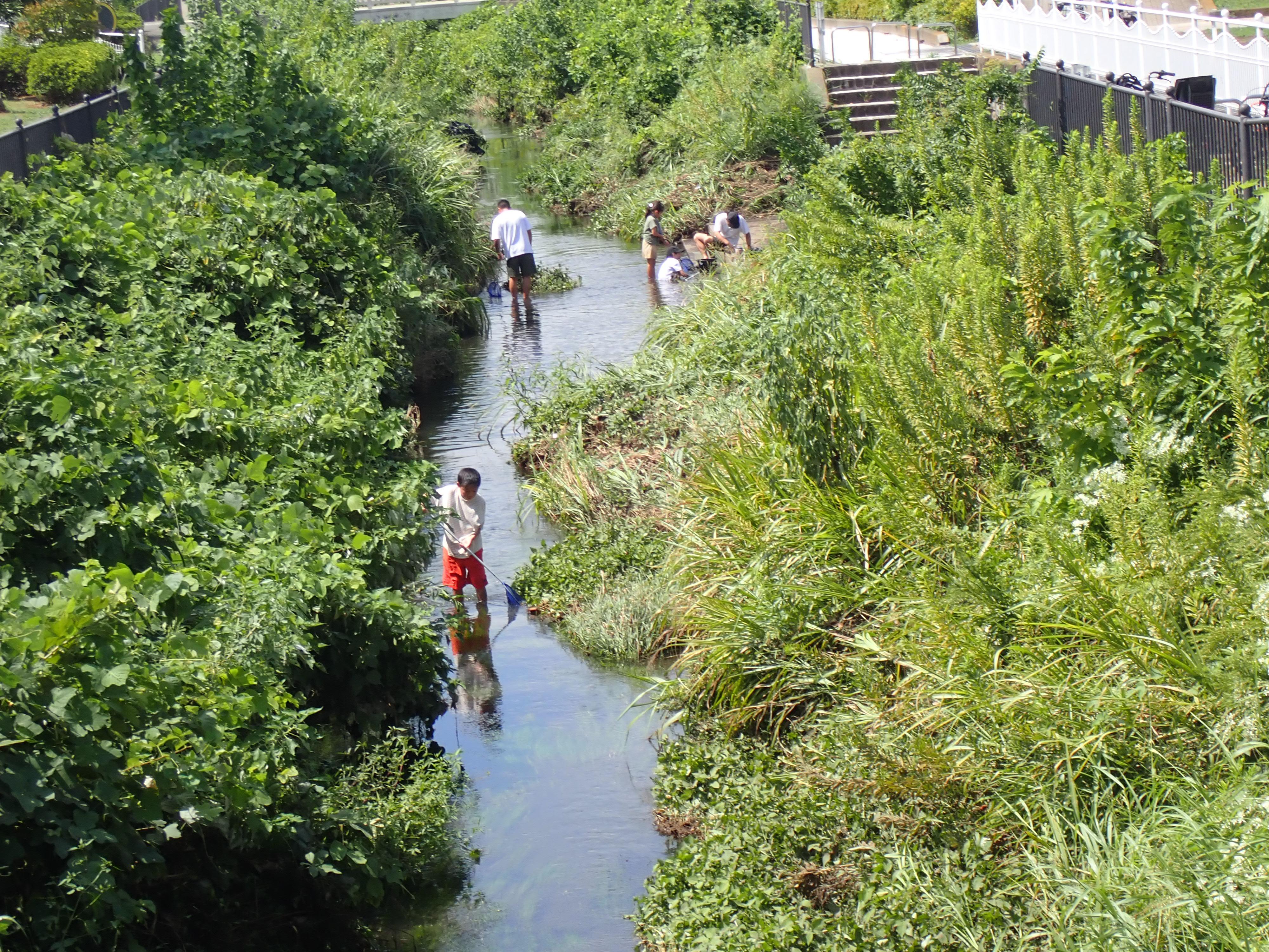 引地川親水公園では子供たちが駆け回り、山中の樹林の中を歩くような