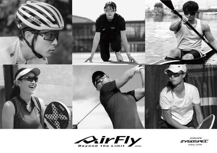 エアフライは眼鏡の国内生産95%を誇る鯖江から誕生しました。110年以上の眼鏡作りで培った経験とノウハウを注ぎ込み作られら画期的なスポーツサングラス "エアフライ"をスポーツを愛するアスリートの方へ鯖江よりお届けします。