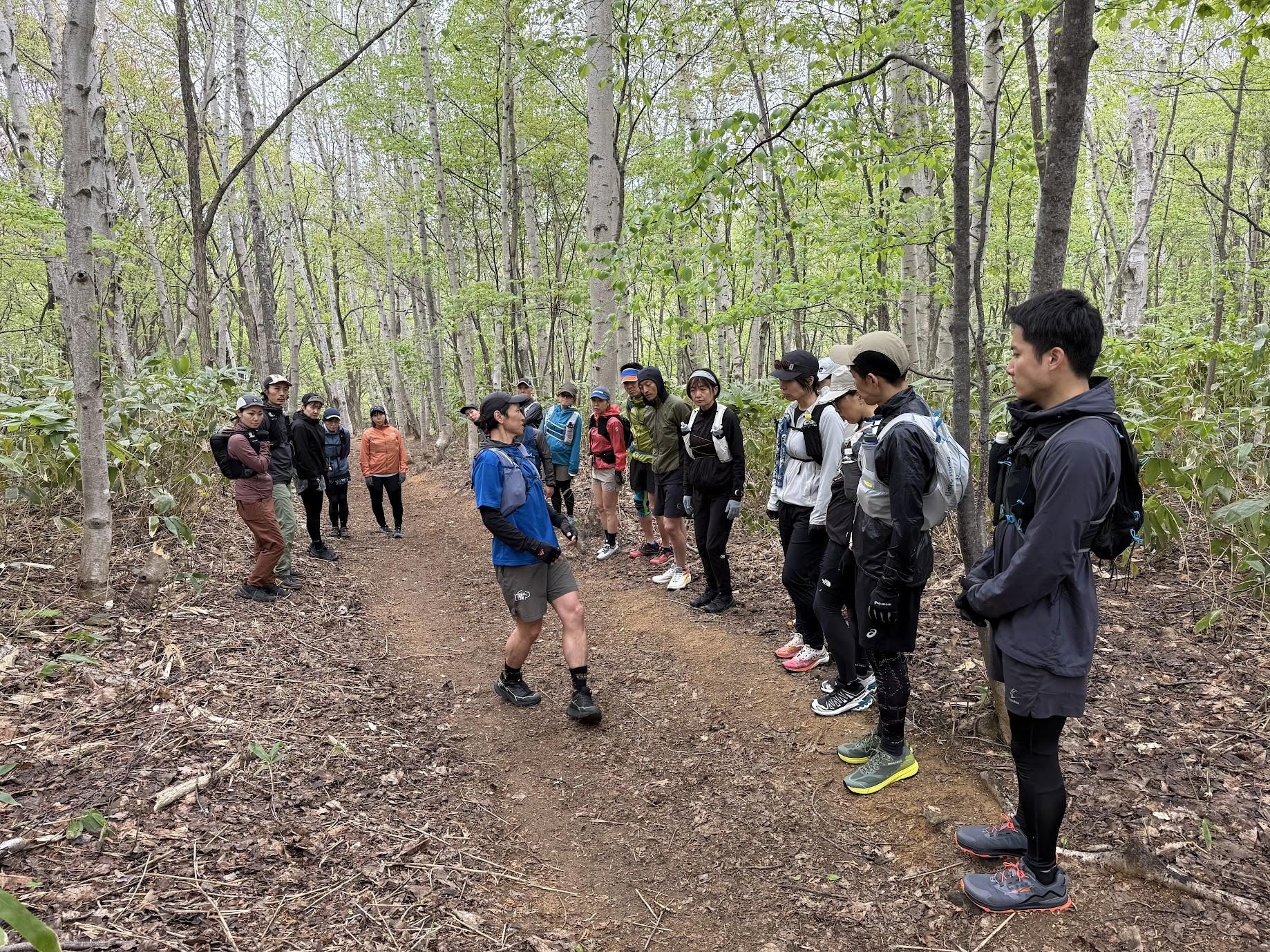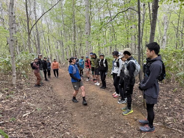 トレイルランニングの基礎、装備・ギアの選び方、山のマナーやルール、ヒグマ対策などの説明を行いながら、担当リーダーの案内のもと、実際にコースを走りつつ分かりやすく実践指導いたします。