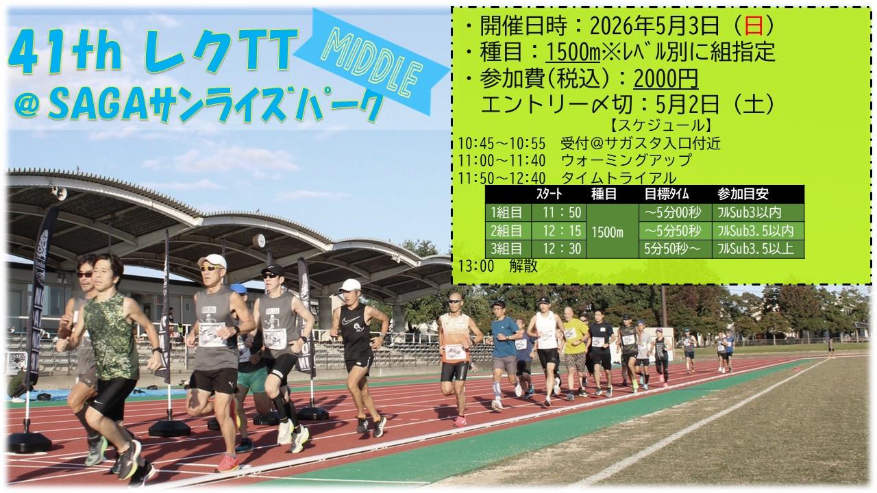 【今日からスピード練習!】第41回レクTT”1500mタイムトライアル”@SAGAサンライズパーク 受付中