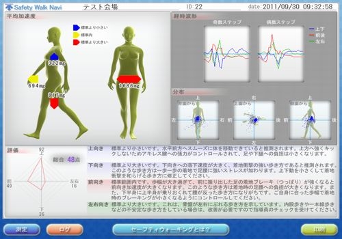 ウォーキングの動きを分析して立体的に安全かどうかチェックします