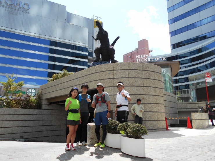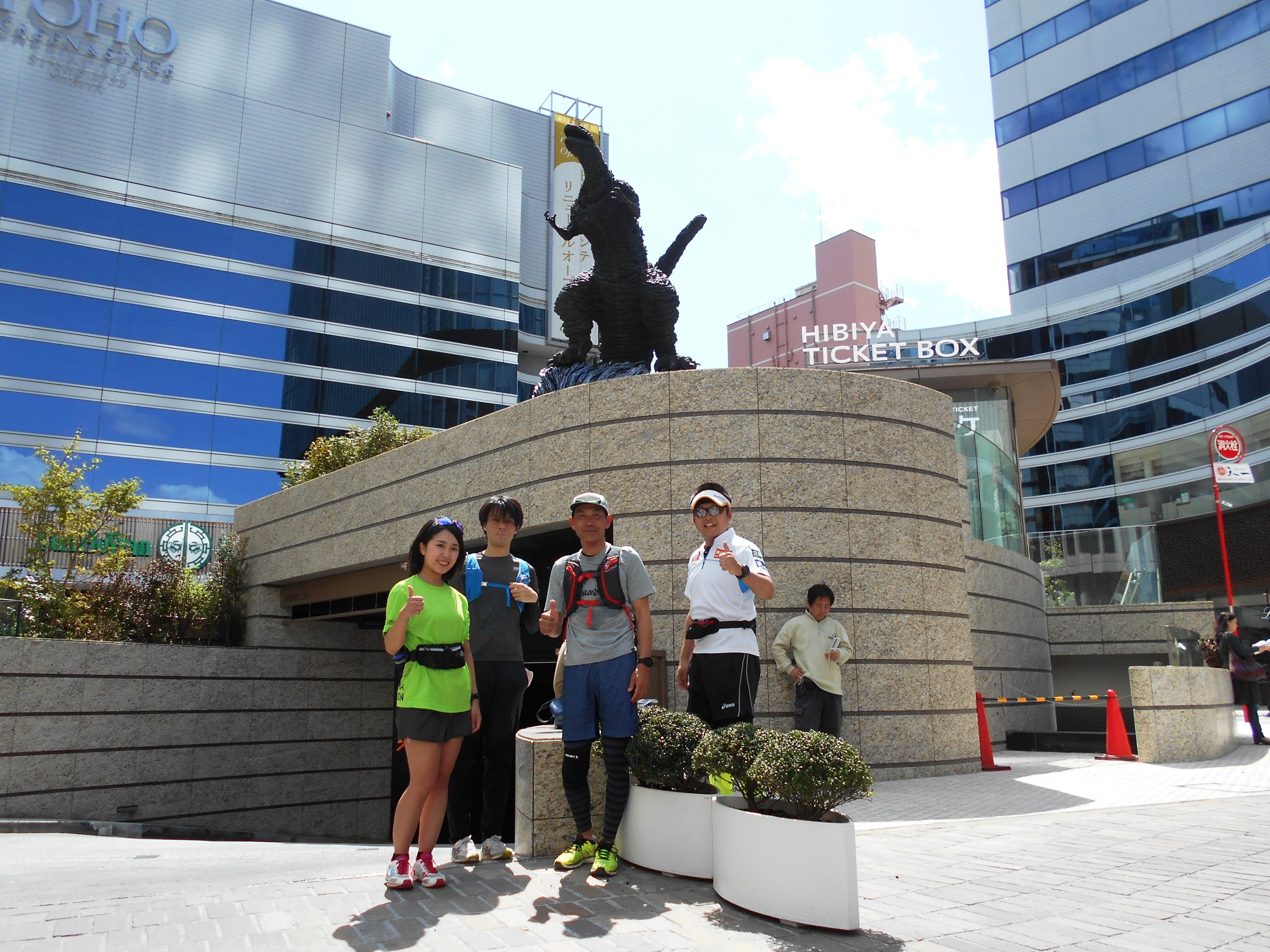開催箇所:中野サンプラザから中野坂上駅、新宿3丁目駅(5km)、皇居周回路、日比谷公園、日比谷ミッドタウンでハリウッド版ゴジラが出迎え、有楽町駅(10km)、銀座、築地、波除神社、勝鬨橋、新晴海大橋、豊洲駅(15km)、豊洲ララポート、深川八幡、門前仲町駅、永代橋、東京駅(21km)、皇居周回路、四ツ谷駅(25km)、新宿歌舞伎町で東宝ゴジラが出迎え、新宿駅、大久保コリアンタウン、神田川、桃園川緑道、中野駅(31km)まで。高低差は約30m、平坦なコースです。