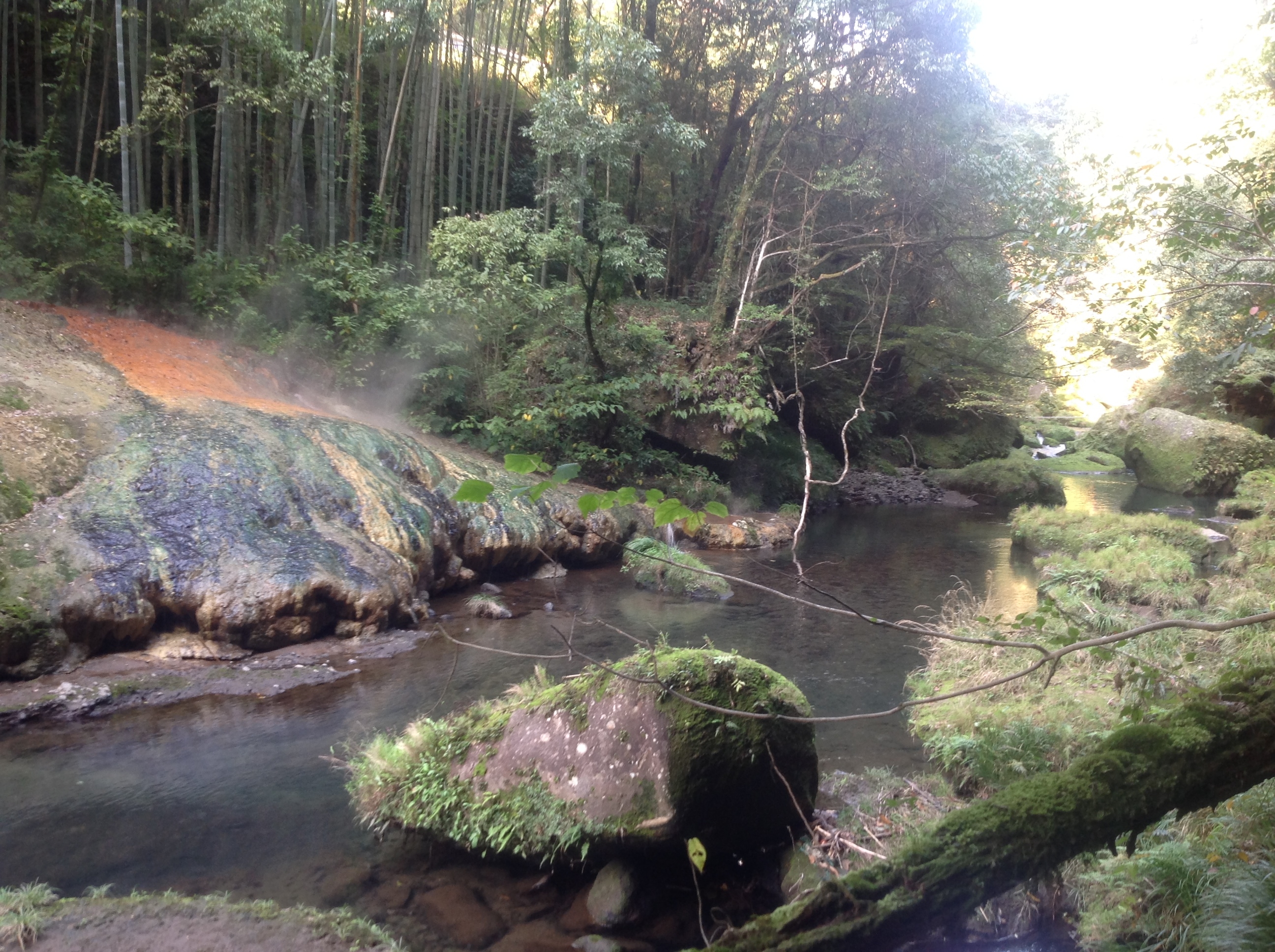 妙見温泉を6:30にスタート。嘉例川駅で休憩し、それから神話の「海幸山幸」に出て来る山幸彦(天津日高彦火火出見尊;アマツヒダカヒコホホデノミコト)の稜とされる高屋山稜を参拝します。そして9:00から「竹子(たかぜ)ふるさとウォーク」に参加します。竹子と書いてタカゼと読むこの地区に、「この世の極楽」はあります。極楽には古代人がつくったと伝わる皿状の大石に周経7mの巨大岩が乗った据石ケ岡(すえしがおか)遺跡があります。極楽に住んでいる皆さんが、極楽茶や「ごくらく」の刻印が押された竹コップ焼酎で長寿のおもてなしで出迎えてくださいます。途中の物産館では地元のおばあちゃんが作った漬物なども売っていますし、そこでも温かいおもてなしで出迎えてくださいます。途中では川の中を大きな鯉のぼりが泳いでいます。ゴールでは生のアンサンブルを聴きながらお弁当を頂けます。梨園のフルーツツーリズムもオプションでご参加できます。〆は温泉で汗を流して頂いた後、バスで空港へお送りします。