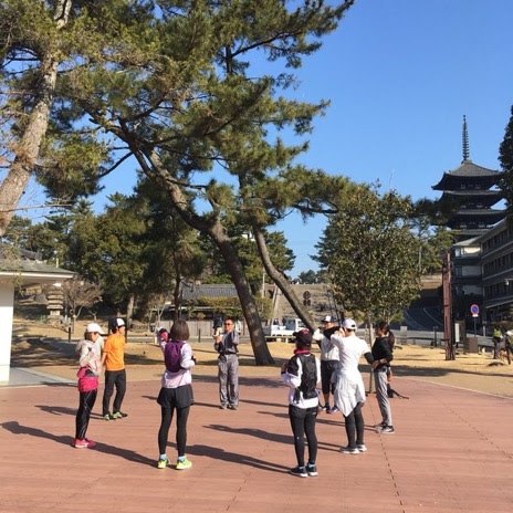 奈良公園などで実技を行い、