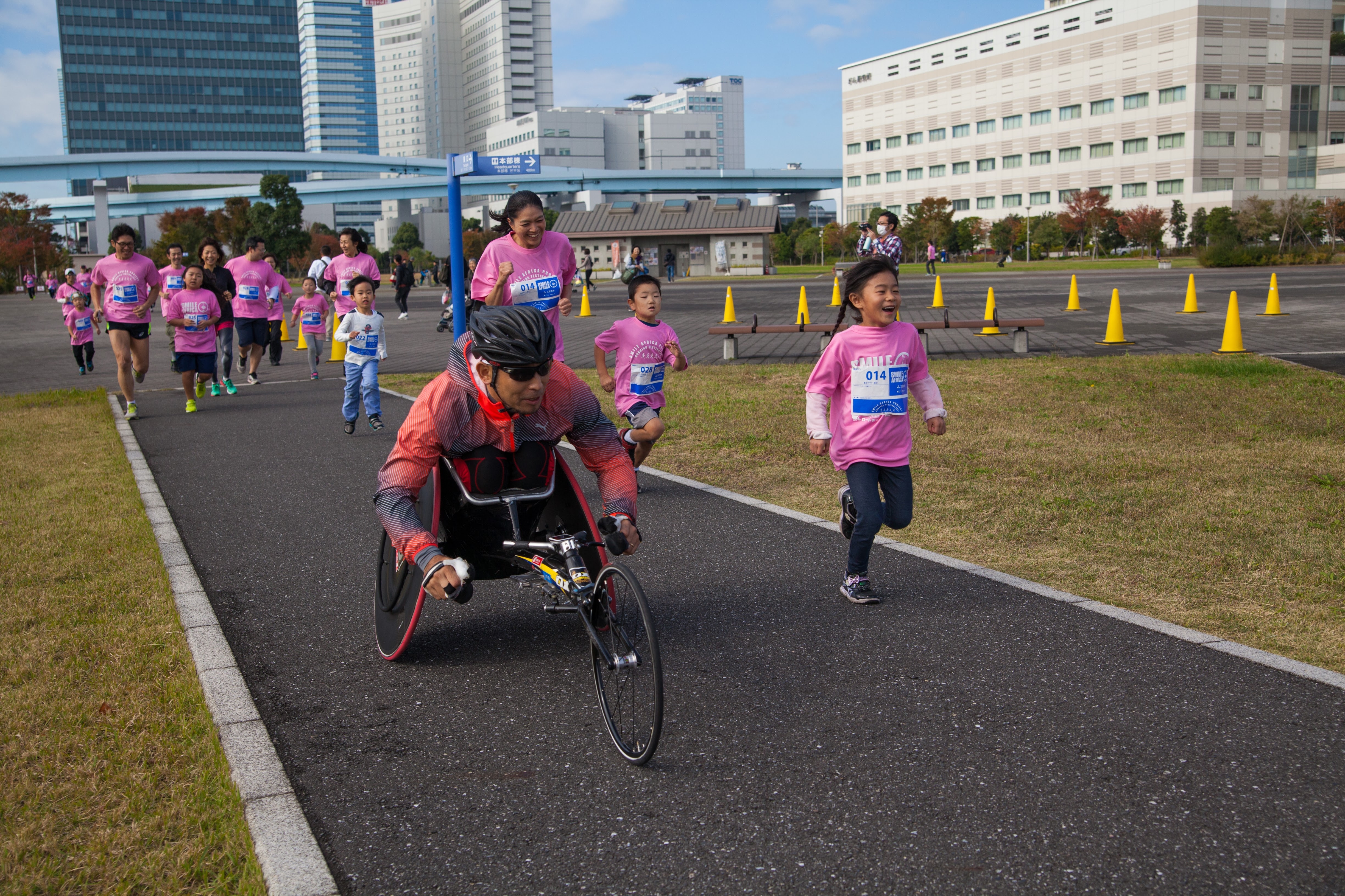 | 種目・距離 | ①アフリカへつなぐリレーマラソン 2~6名までの1組で、3時間を駅伝方式でつなぎます。 ※チップをつけたタスキを各チームリレー形式でつなげ、全チームが3時間で走った距離を合計して日本-ナイロビ間(約11,300キロ)を目指します。 ・募集200組400名~ ・参加費:1人3,240円 ・対象:中学生以上 ②親子ラン/約1.35km 小学生以下のお子さんと保護者2人1組で、 既定のコースを走ります。 ・募集100組200名~300名 ・参加費:2人1組3,240円 3人1組4,860円 ・対象:小学生以下+保護者 ※保護者1名と子ども2名でのご参加を希望される方は3人1組でエントリーできます。 ※計測はございません。 ③車イス体験コーナー 競技用車いすなどを体験できるコーナーを予定しています。 ぜひ体験してみませんか! |