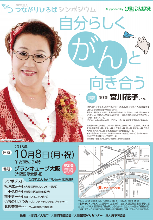 自分らしく『がん』と向き合うをテーマに、宮川花子様を講師にお迎えしテーマに沿ったお話を予定しています。