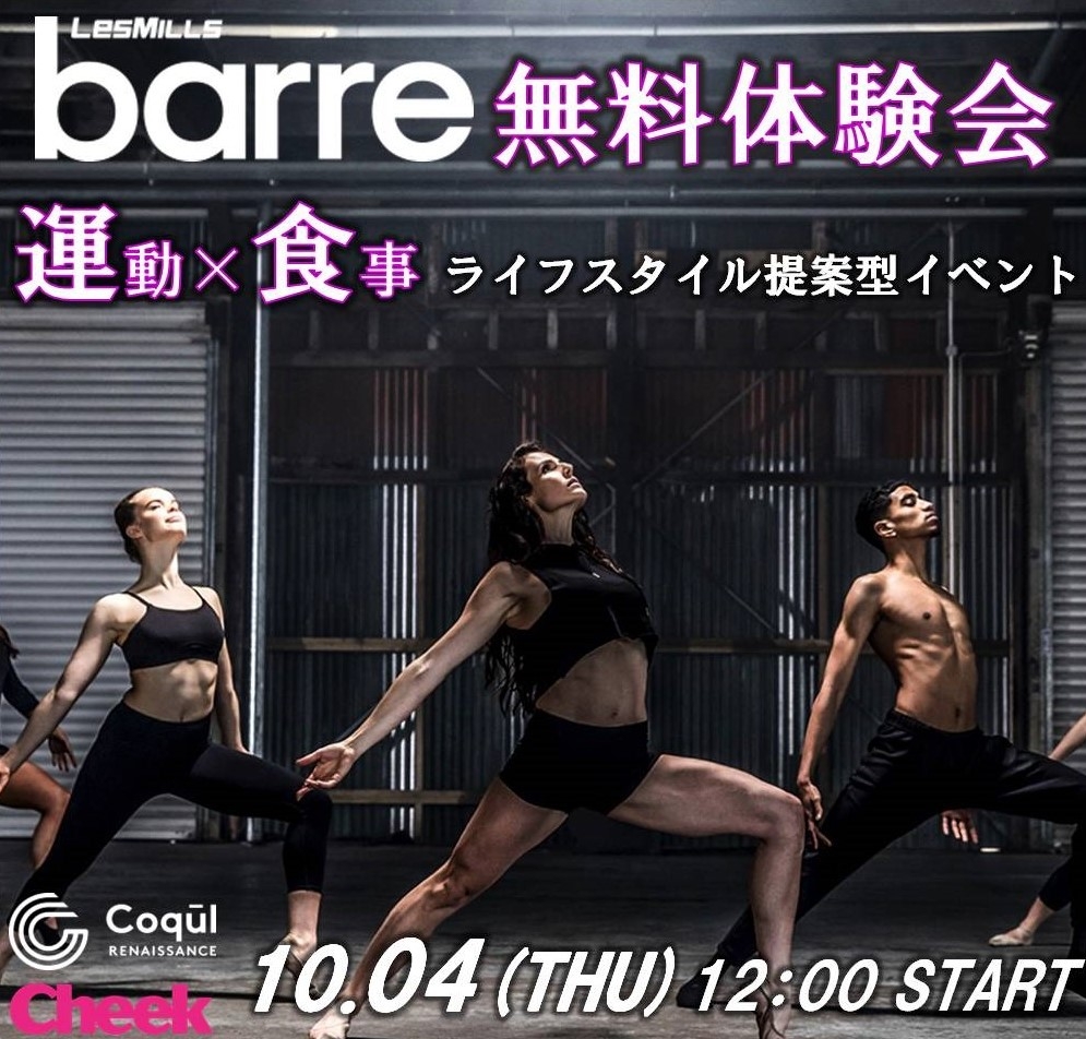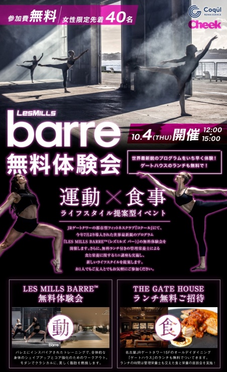 名駅のゲートタワーにあるジム『Coqul コクール』の新プログラム 「barre」の女性限定無料体験会を実施します!