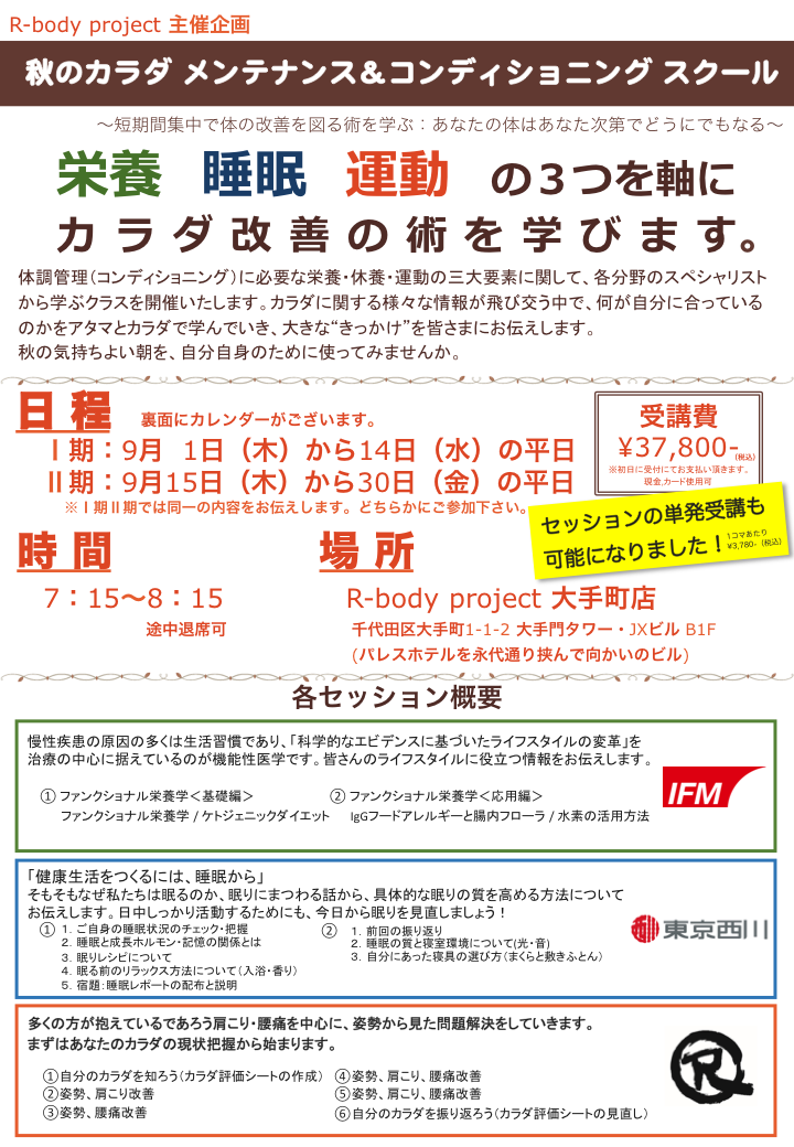 秋のカラダ メンテナンス&コンディショニング スクール 第1期 受付終了