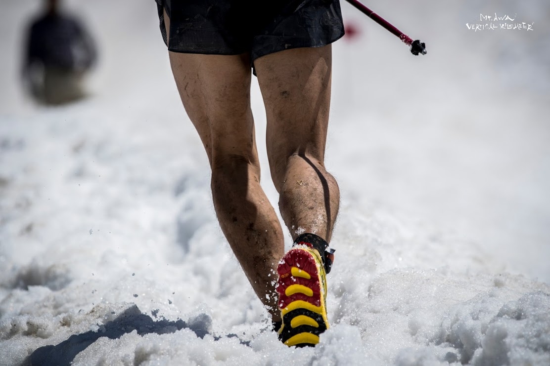 登りの技術と心肺機能、加えてここ粟ヶ岳では残雪期開催の為に、雪上での山岳技術も求められ、山岳レースのスプリント的存在。