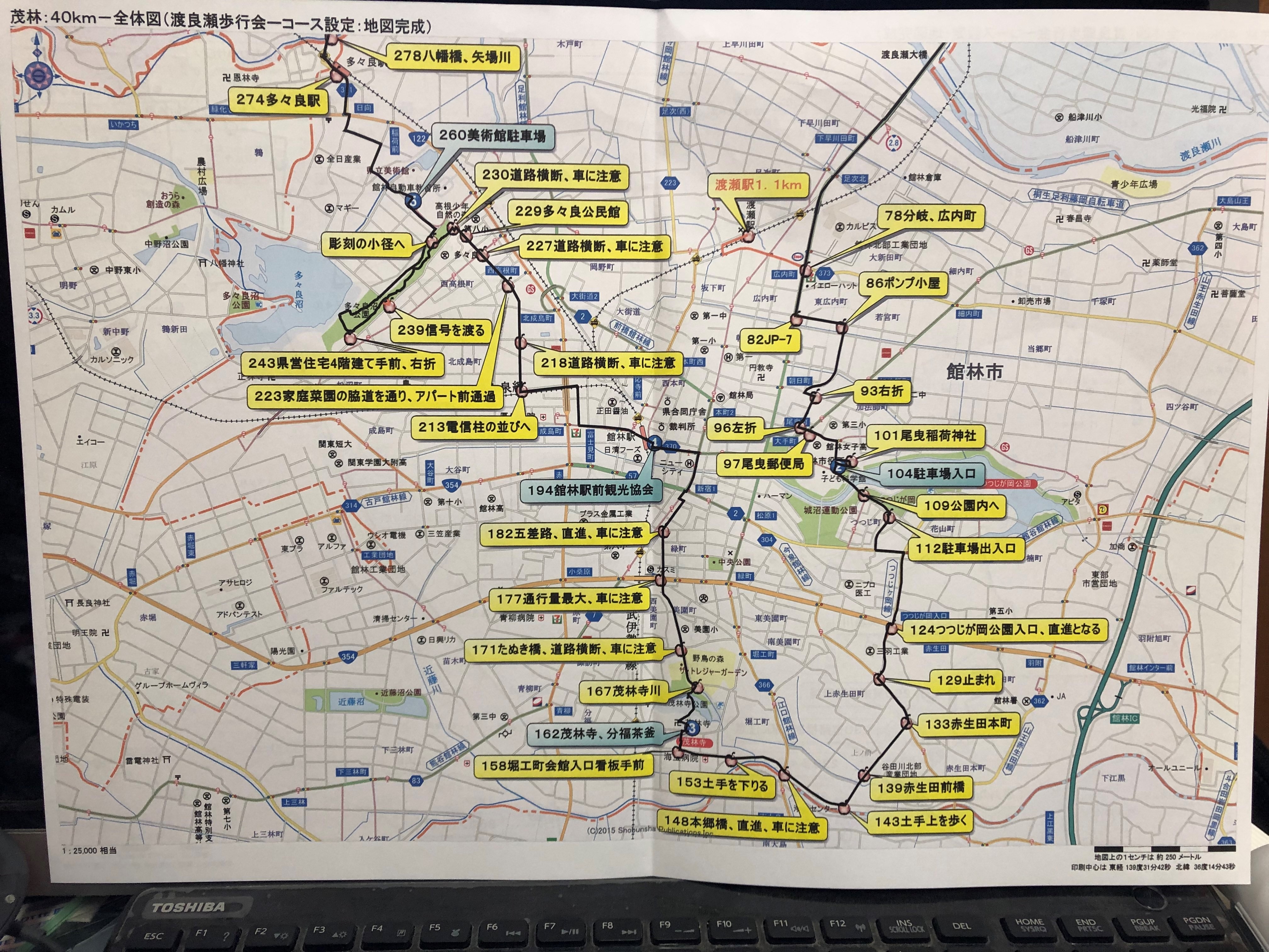 ′-①3.7km田島駅wc-②10.4km尾曳稲荷神社wc-③16.2km茂林寺wc-④19.4km館林駅前wc-⑤26.0km舘林美術館WC-⑥33.8km吾妻地区公民館WC-⑦37.8km西部大橋公園wc-⑧39.5km