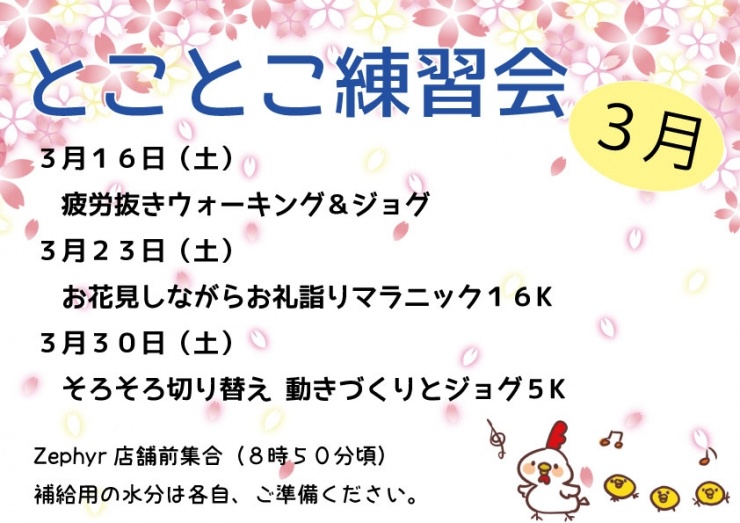 | 集合場所 | Runner's club house Zephyr(Chick) |