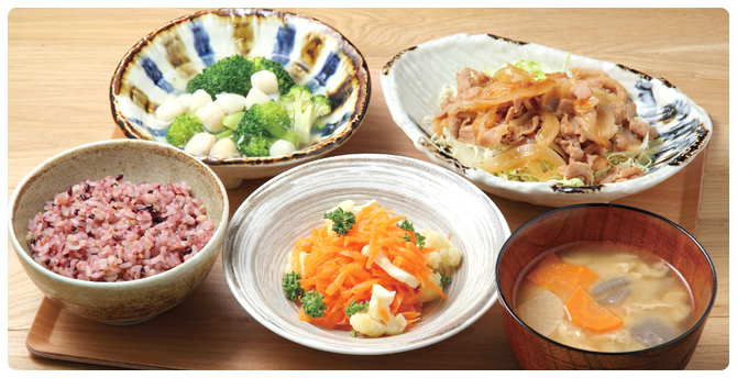 鹿屋体育大学監修による 「アスリート食堂定食」は、「スポーツ栄養学」に基づいたおかずの組み合わせで様々な健康志向に合わせた食事を形づくる、これまでになかったバランス定食です。